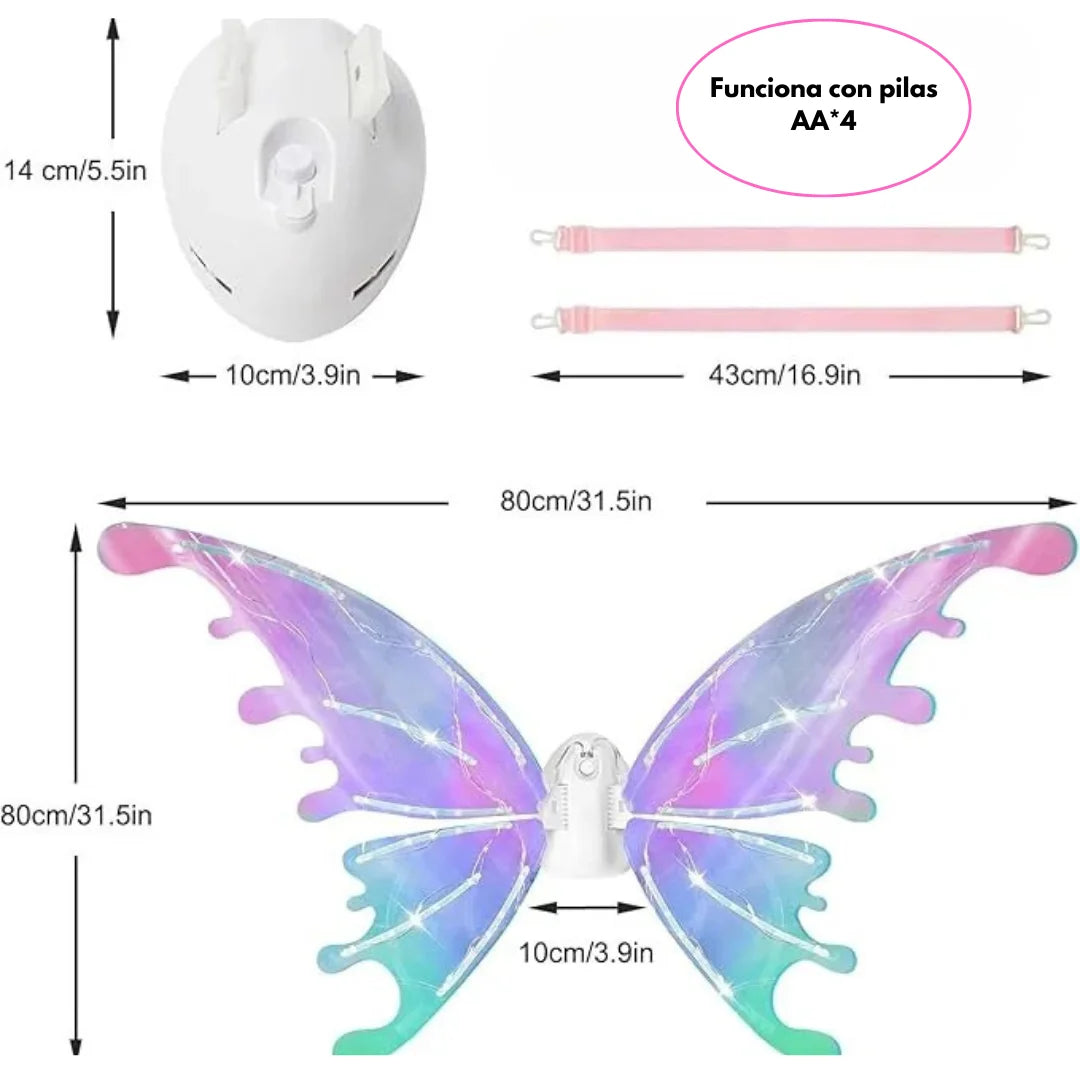 Sí, las alas tienen un diseño ajustable y ligero que se adapta fácilmente a diferentes tallas. Son ideales para niñas desde 3 años hasta preadolescentes, cómodas y seguras de usar en fiestas, disfraces o presentaciones.