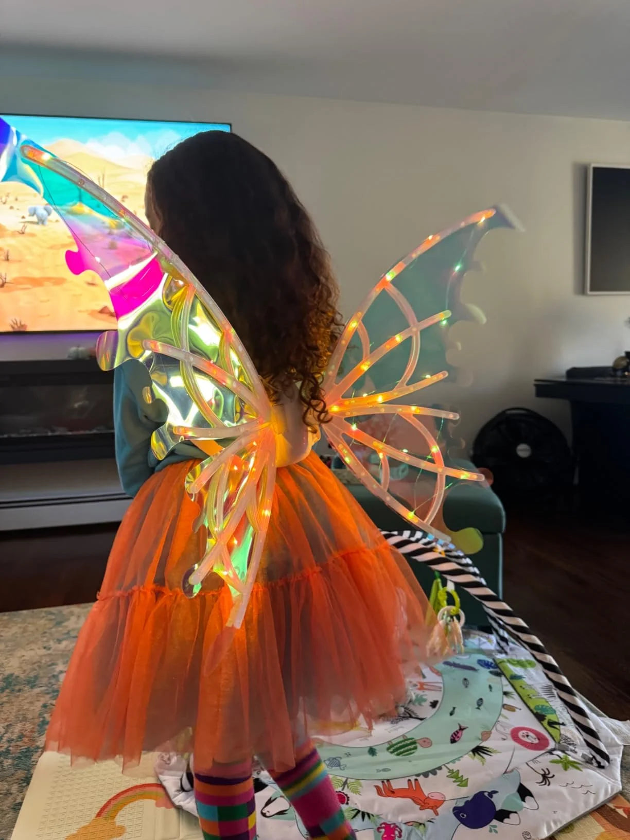 Las alas funcionan con luces LED de bajo consumo, totalmente seguras para los niños. Con pilas nuevas, pueden durar varias horas encendidas, perfectas para todo un evento sin preocuparte de que se apaguen.